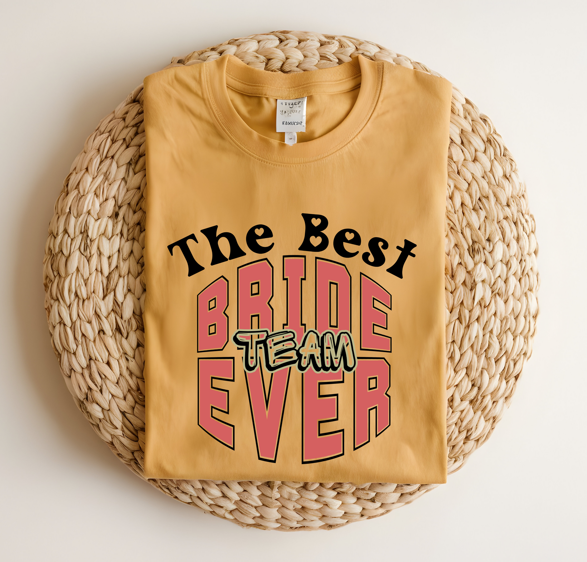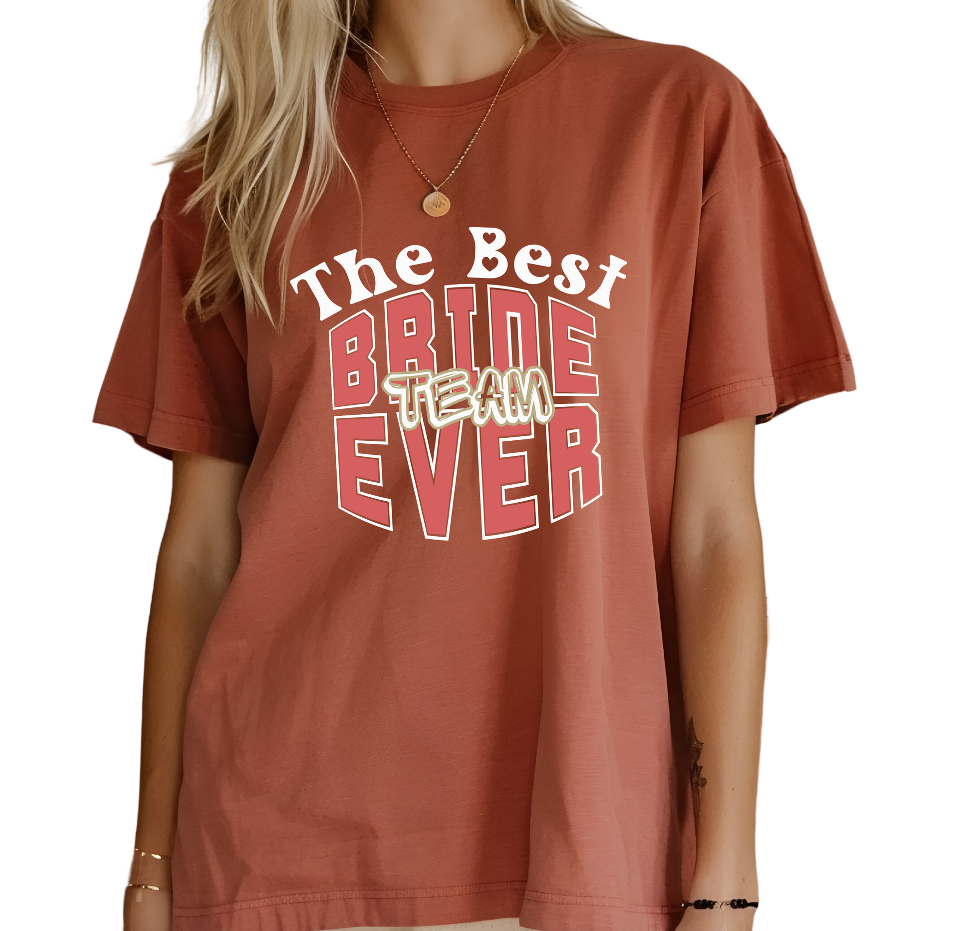 Make your bridal entourage stand out with these irresistible garment-dyed T-shirts. The playful 'best bride team ever' design transforms ordinary pre-wedding gatherings into unforgettable celebrations while keeping everyone comfortable and looking their best.
