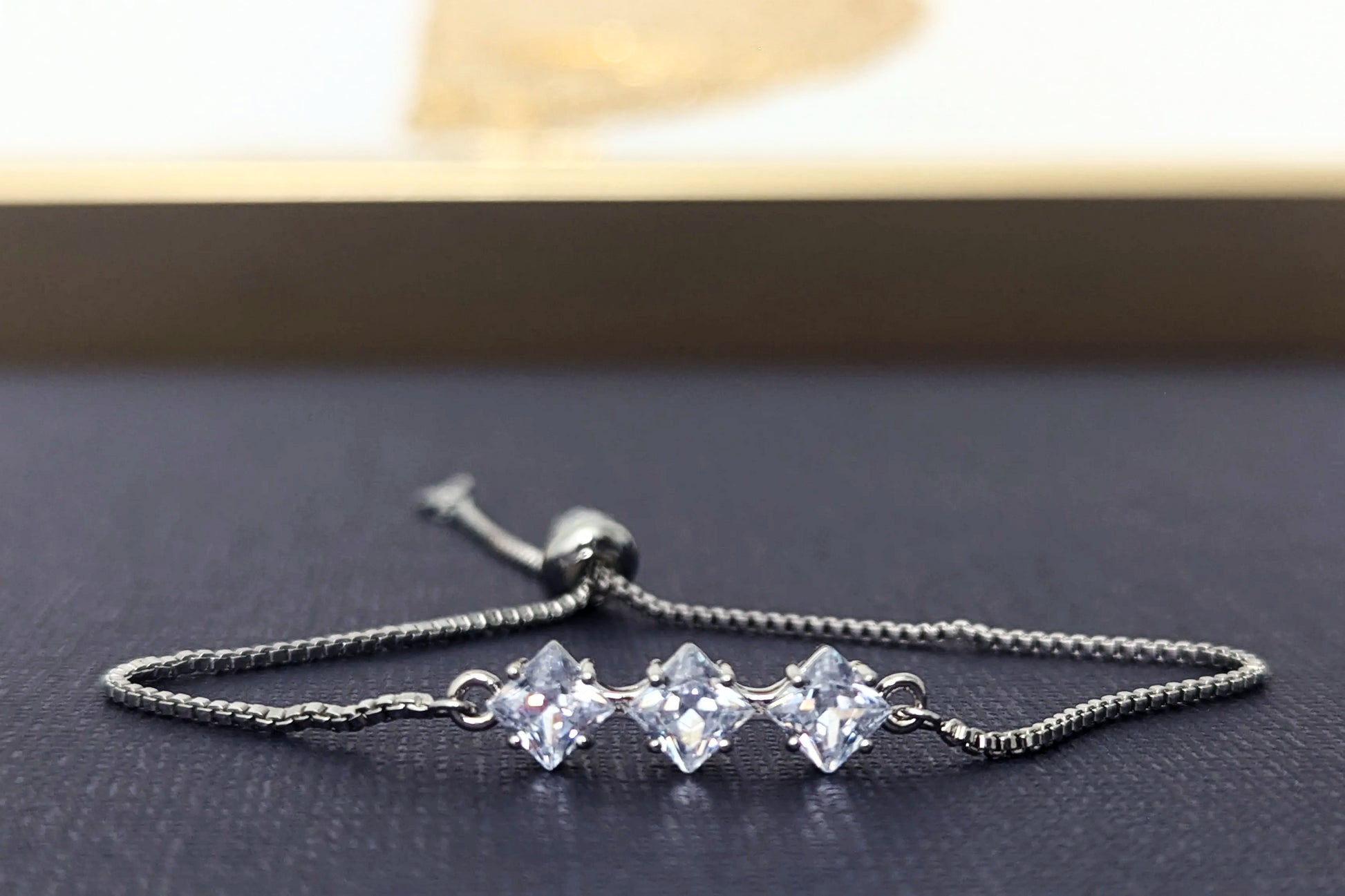 Indulge in timeless elegance with our elegant prong setting CZ bracelet, featuring sparkling cubic zirconia crystals in prong settings of gold and rhodium plating over brass. Perfect for special occasions or everyday wear, its adjustable sliding clasp guarantees an ideal fit from 4" to 11" in length. Choose from gold or silver and experience classic diamond style with lasting durability. It makes a perfect gift for brides, bridesmaids, birthdays, or as a thank-you gift!