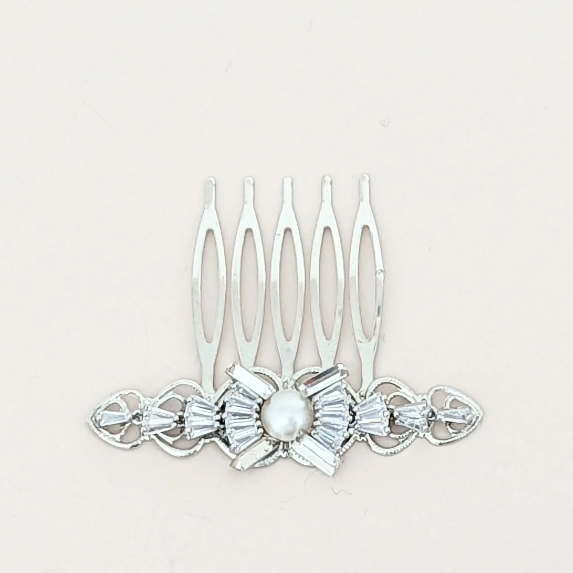 Add a touch of timeless elegance to your bridal ensemble with our glittering Art Deco-inspired bridal hair comb. It is crafted meticulously; this exquisite hair accessory features intricate crystal details that beautifully reflect the modern bride's dainty, minimalistic style.