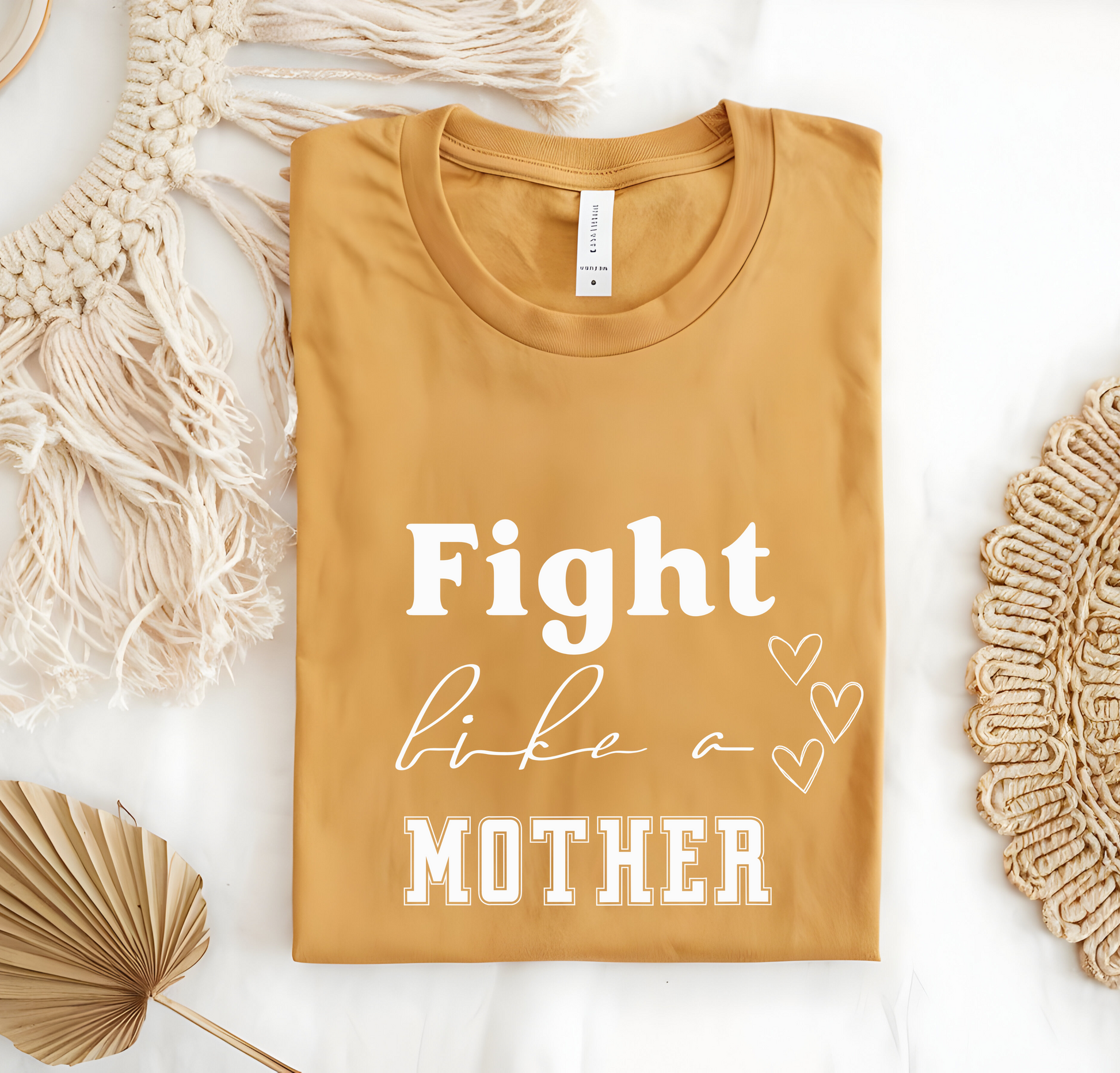Show your fierce mom spirit with our Fight Like a Mother shirt! Perfect for football moms, sports moms, or any strong, supportive mama out there. Whether you're cheering from the sidelines or leading the Mom Son Crew, this stylish and comfortable graphic tee is a must-have for game days and everyday wear. Pair it with jeans or leggings for an effortlessly cool mom-life look.