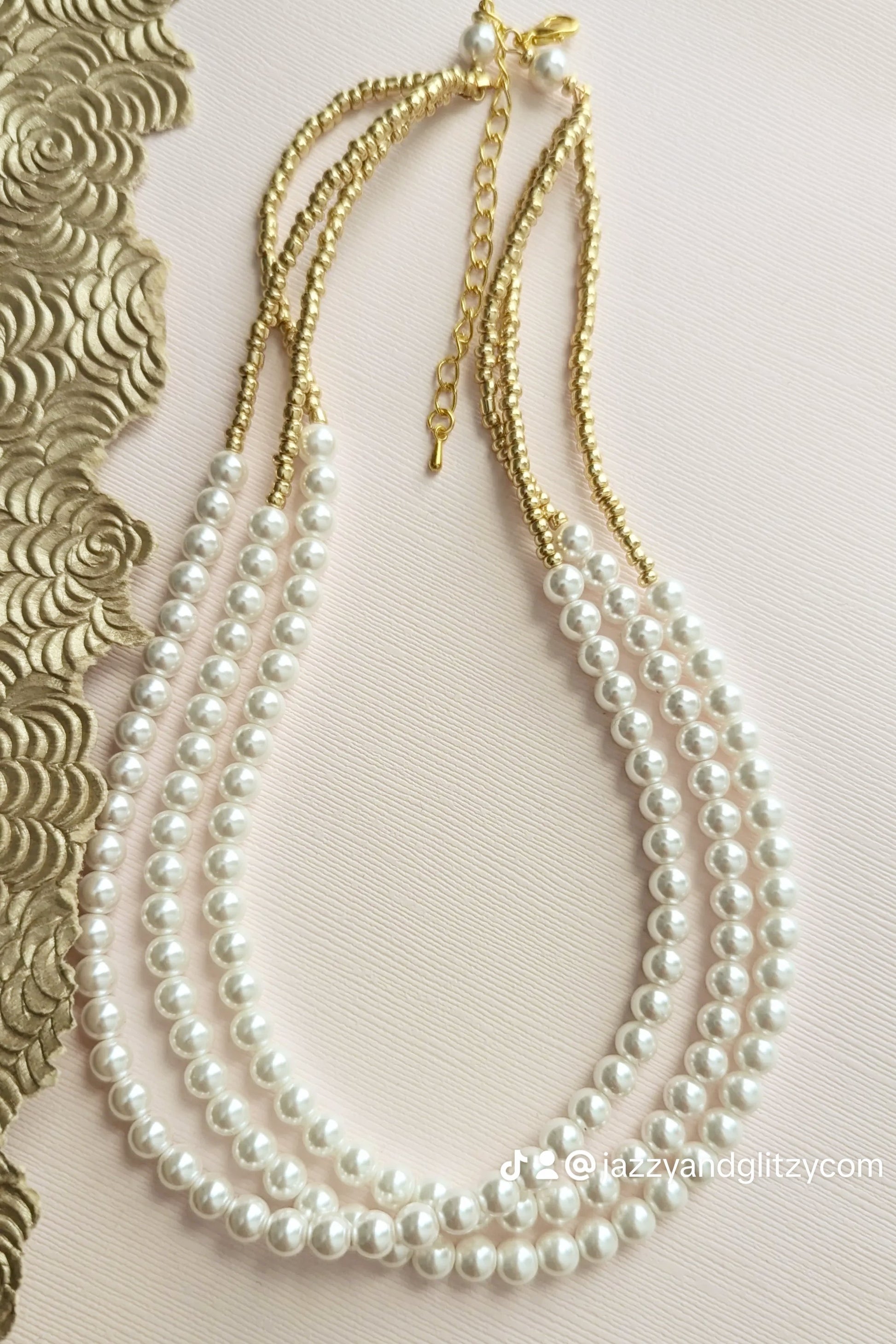Elevate your style with this exquisite handmade gold and pearl bead necklace. Featuring lustrous white pearls and delicate gold beads, this multi-strand design offers timeless elegance. Also available with creamy pearls to complement any look. It's a perfect pearl necklace for women, ideal for a wedding day or to add a touch of modern bohemian flair to your everyday attire—a genuine statement piece crafted for both comfort and beauty.