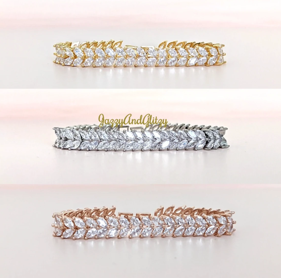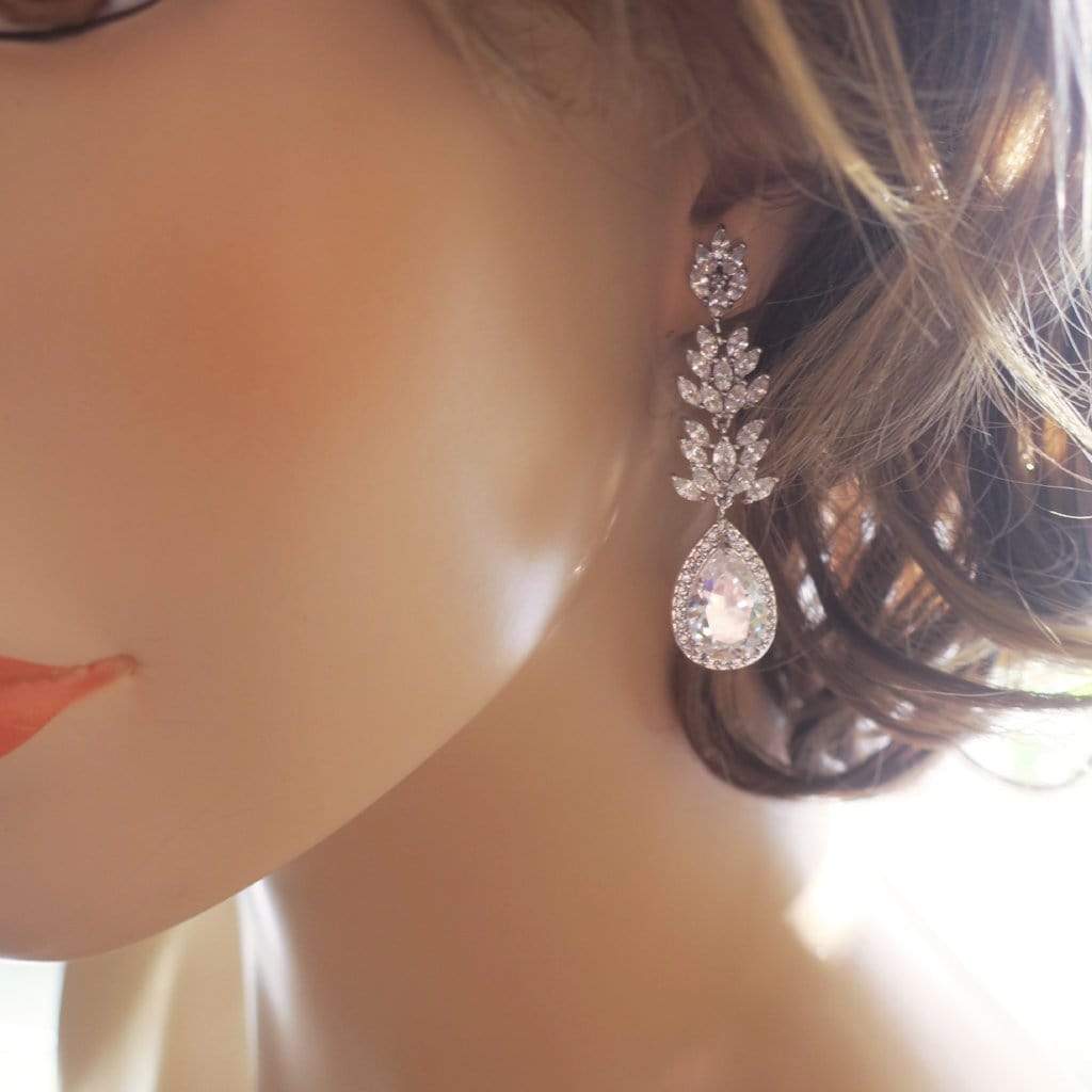 Transform your bridal look with the stunning CZ Marquise Leaf-shaped earrings that showcase CZ Gwenchy drops.