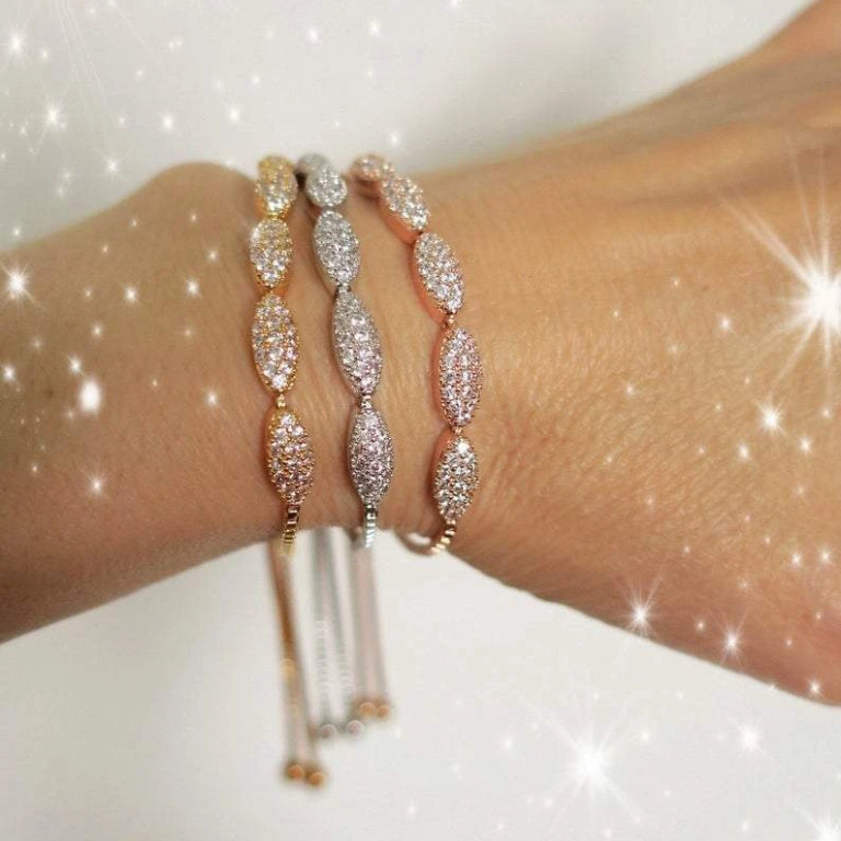This dainty marcasite bracelet features luxurious marquise-shaped settings in a bohemian elegance...